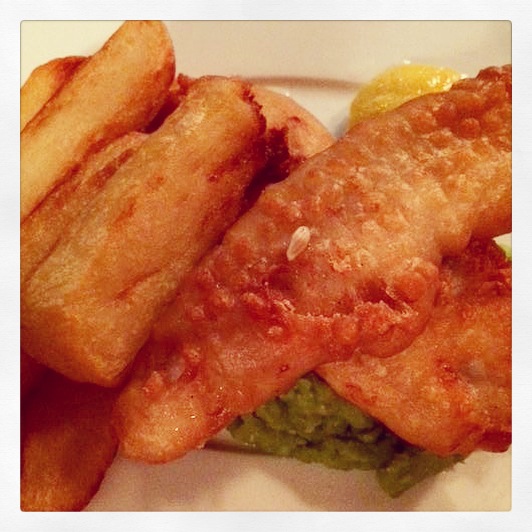 After finally landing a table, I was ready for my Pub Grub Fish & Chips which did not disappoint. A nice piece of Cod with the fattest chips I’ve seen in a while and yummy mushy peas. I did do a double take when I saw the price of AED78 though – the cost of dining out in Dubai is something that takes a while to get used to, regardless of where you go. (I really have to learn to shut an eye to the prices or I’ll never eat out!)